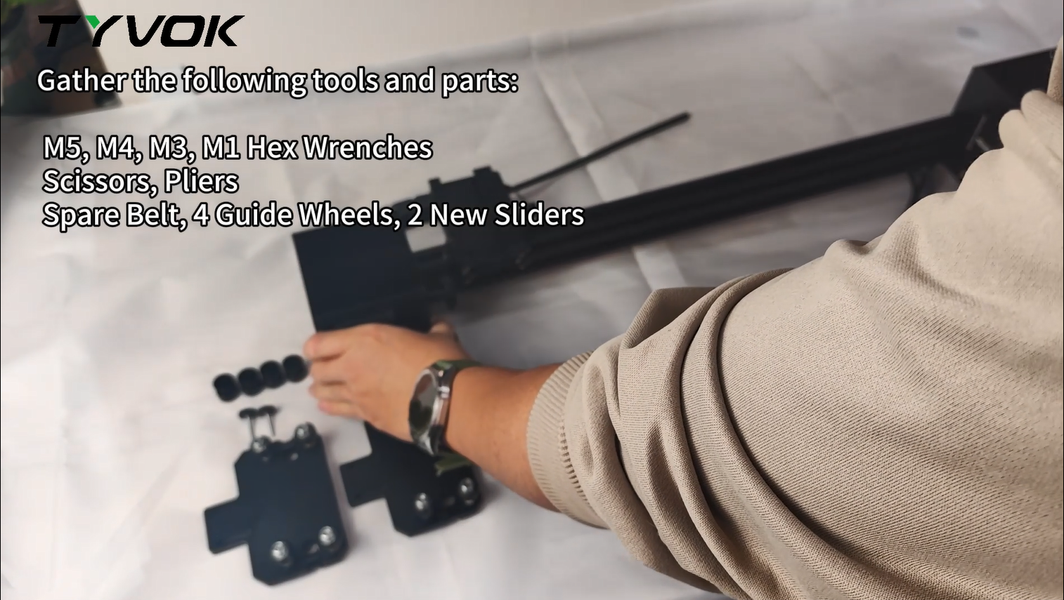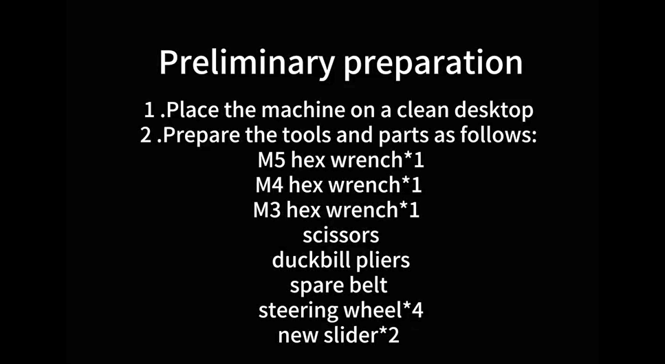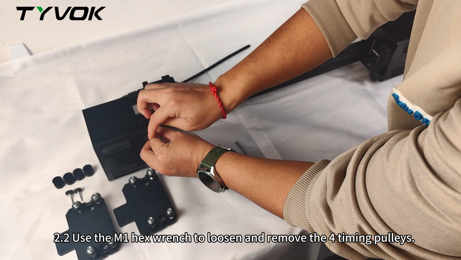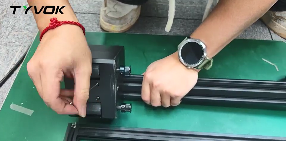 ¶ 3.2.unscrew the two belt fixing screws on the left and right sides to facilitate the subsequent installation of the slider into the Y axis on both sides