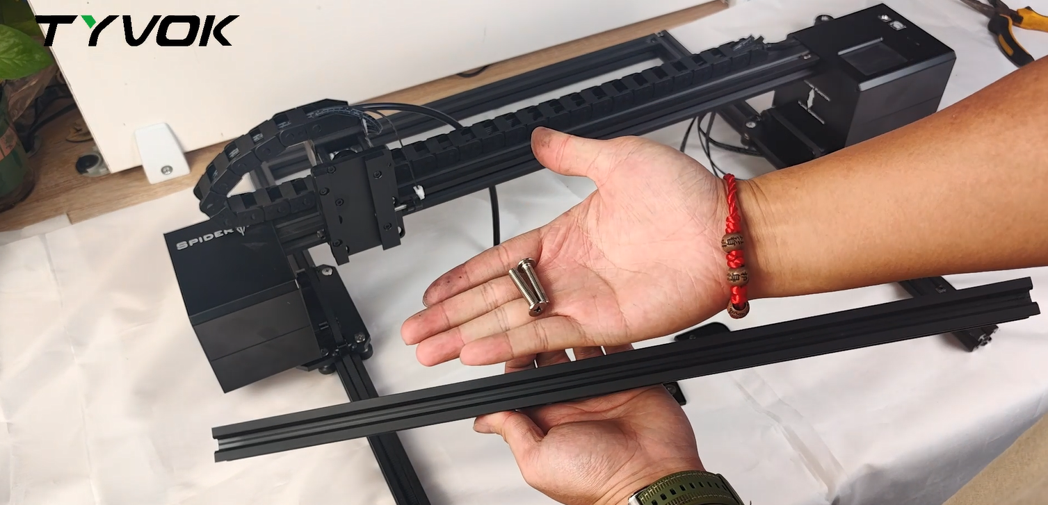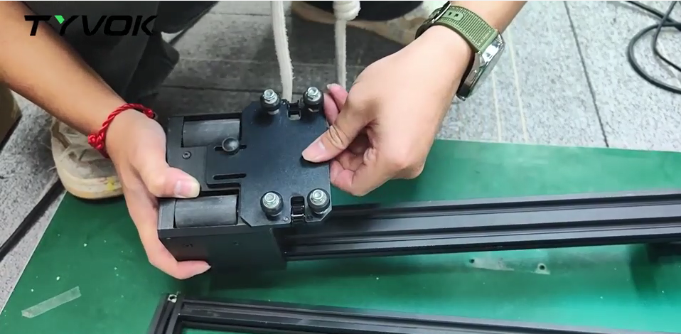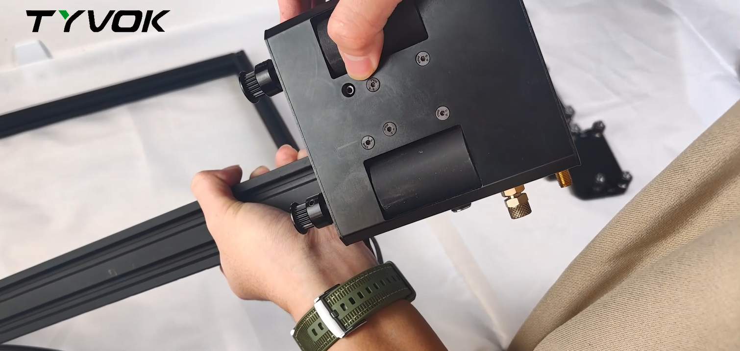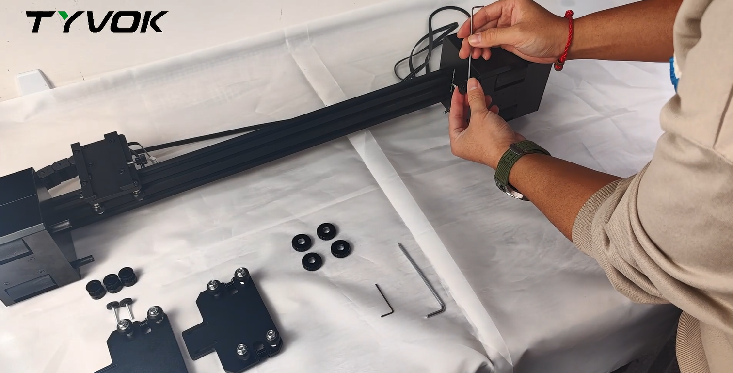 ¶ 5.7.Take out the right slider and pre-install the hand screws into the upper groove of the slider in advance(The right side in the same way)