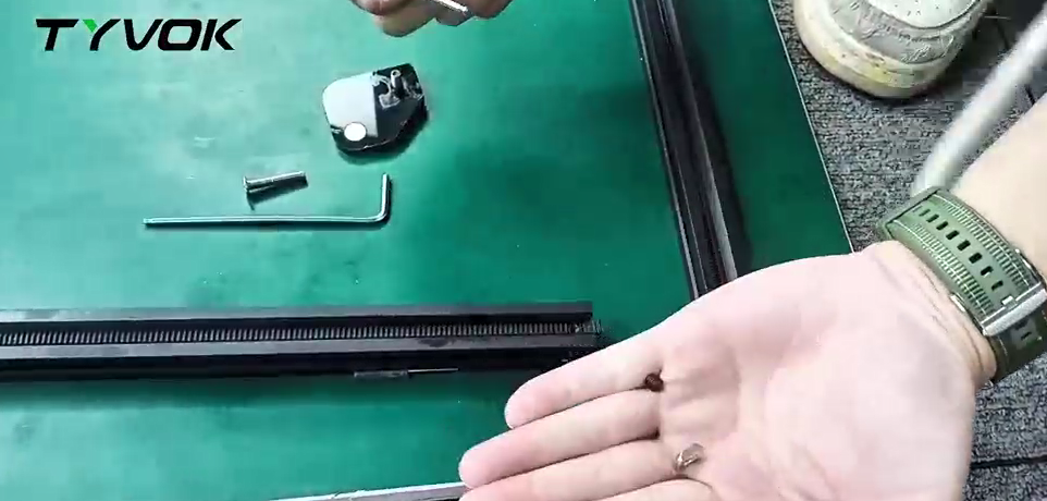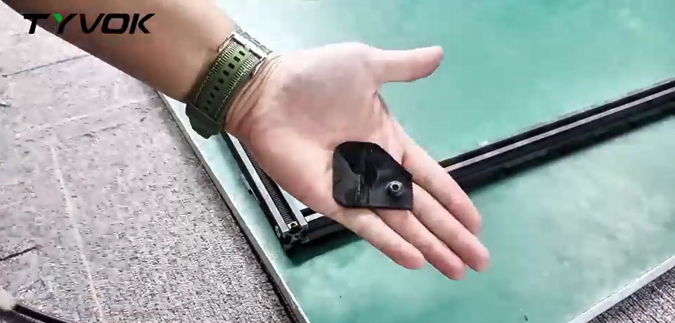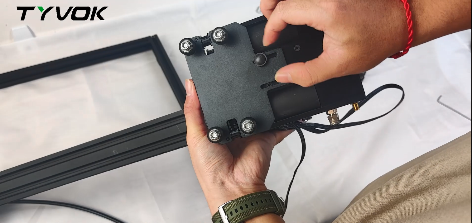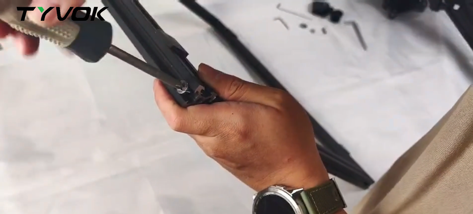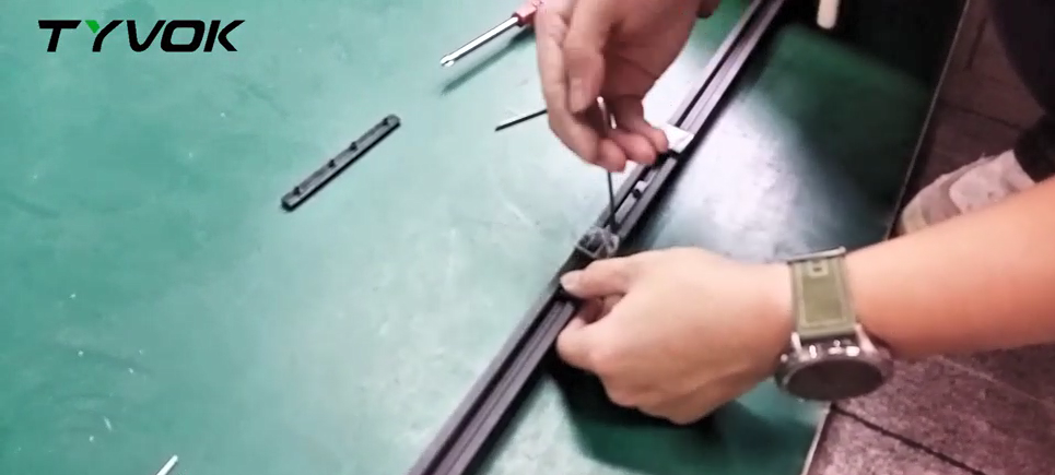 ¶ 5.7.Take out the right slider and pre-install the hand screws into the upper groove of the slider in advance(The right side in the same way)