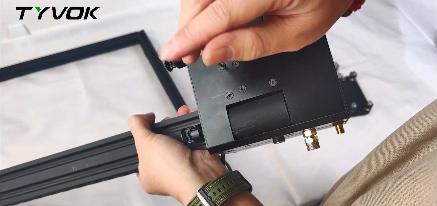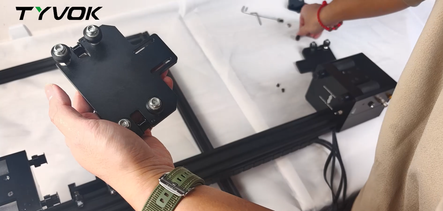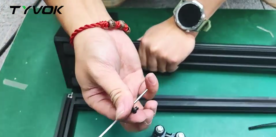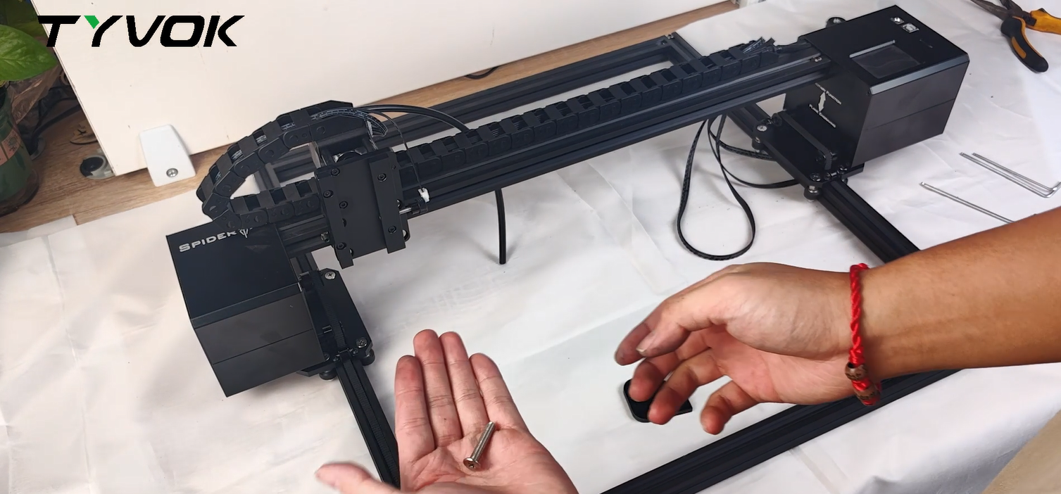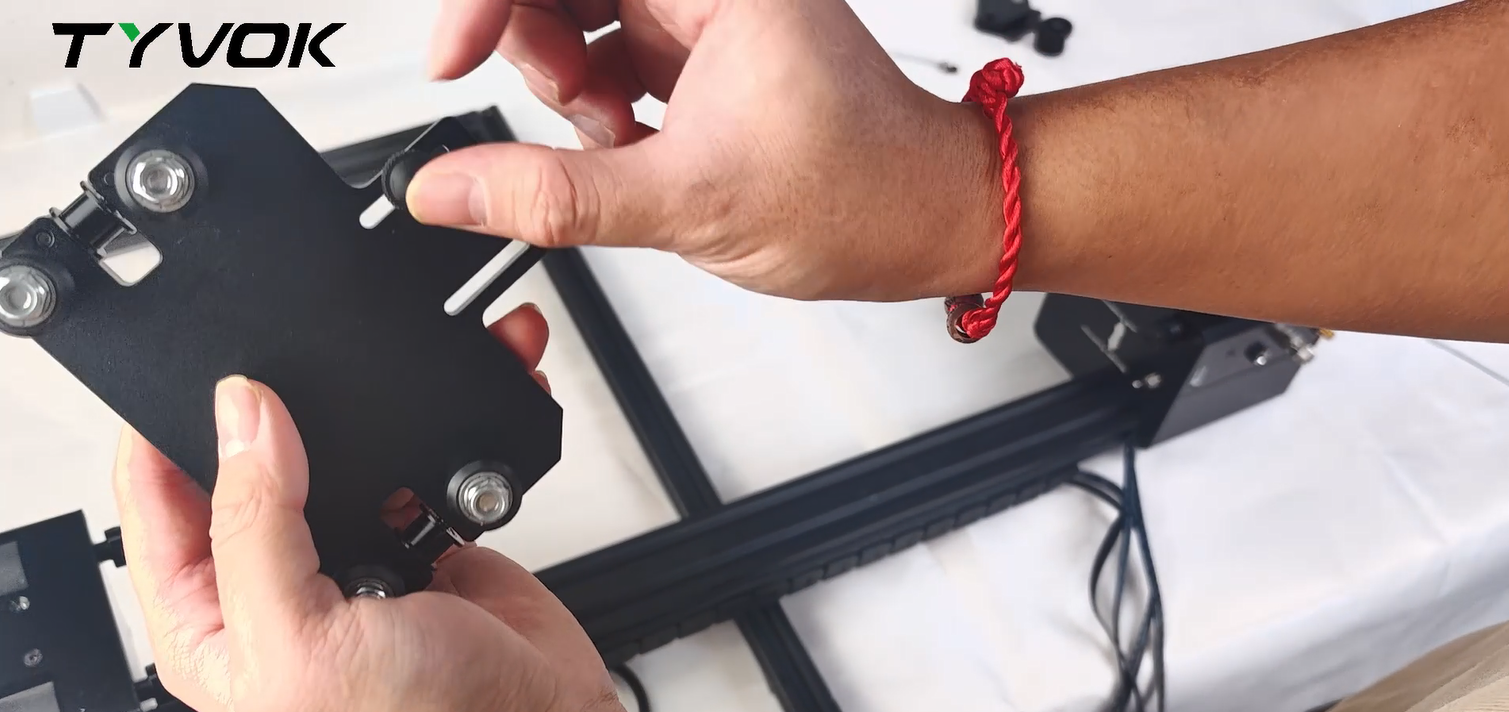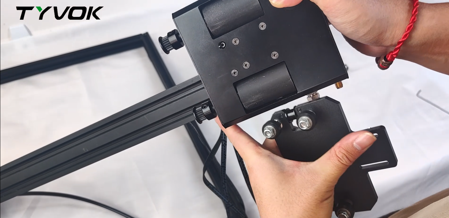 ¶ 5.4.Press one top screw on each side of the upper edge of the Y-axis, leaving one side for later installation of the slider