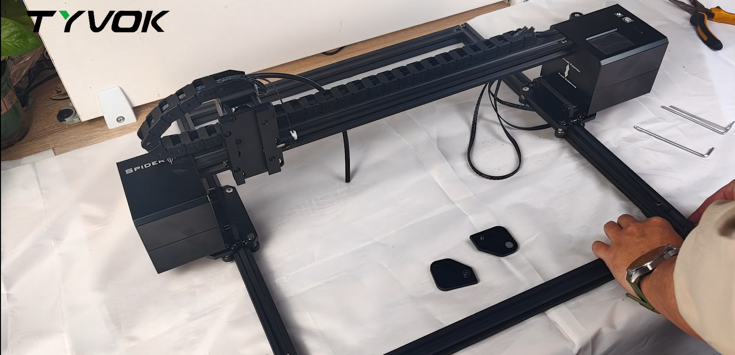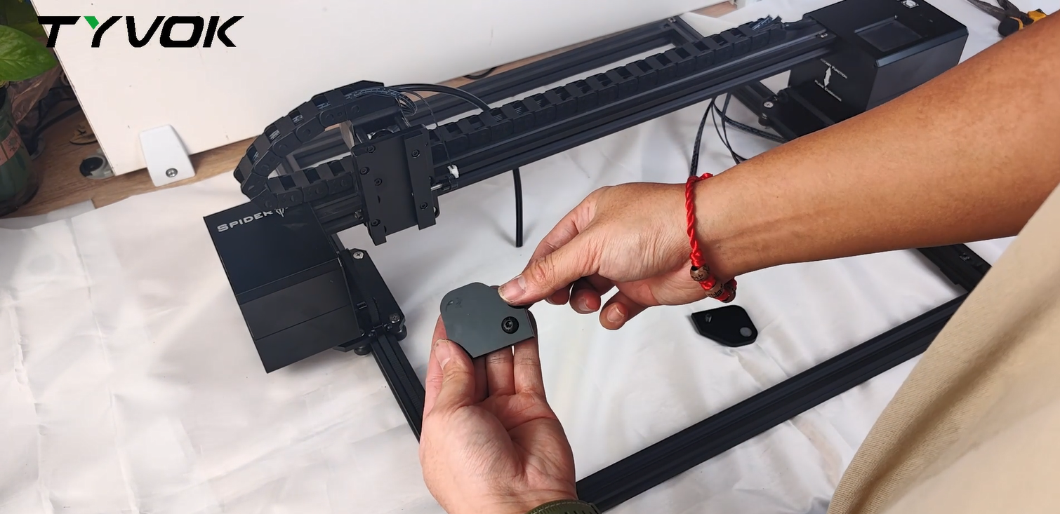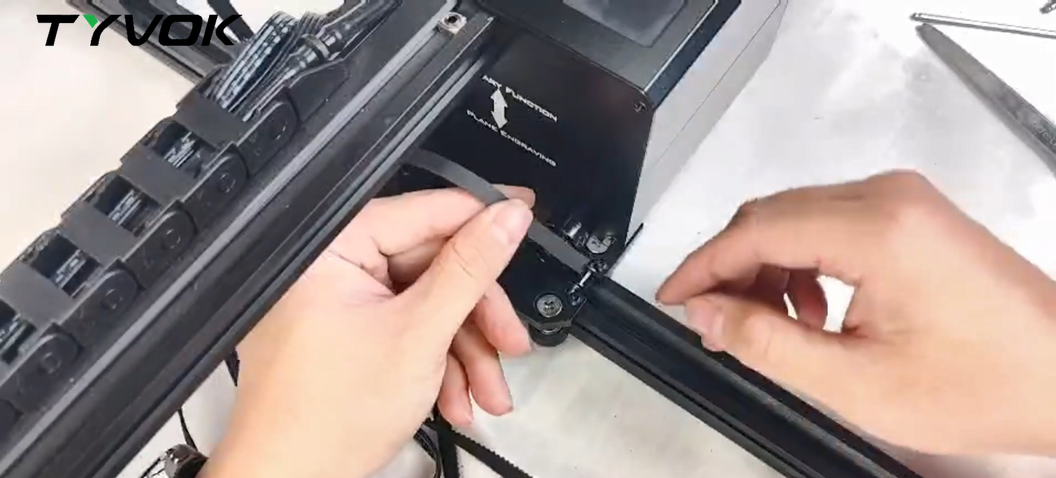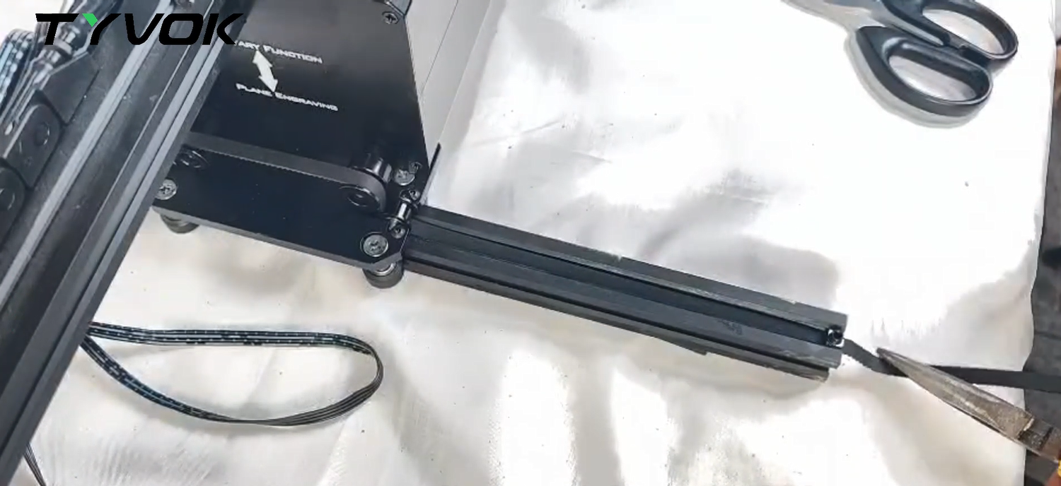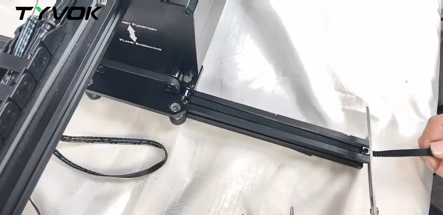 ¶ 4.1.Unscrew the two belt top screws on the left and right sides above the Y-axis, take out the two Y-axis frame belts